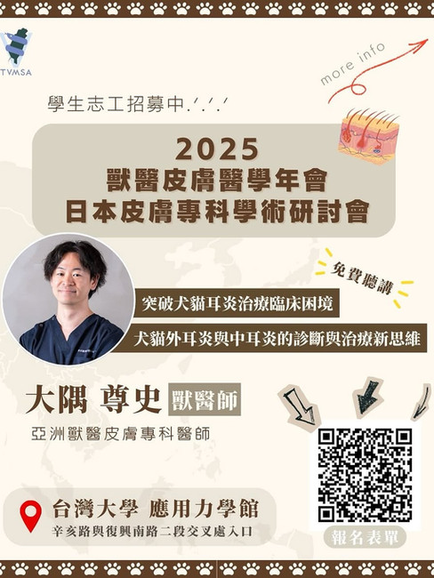 2025 獸醫皮膚醫學年會暨日本皮膚專科學術研討會|學生志工招募開跑!