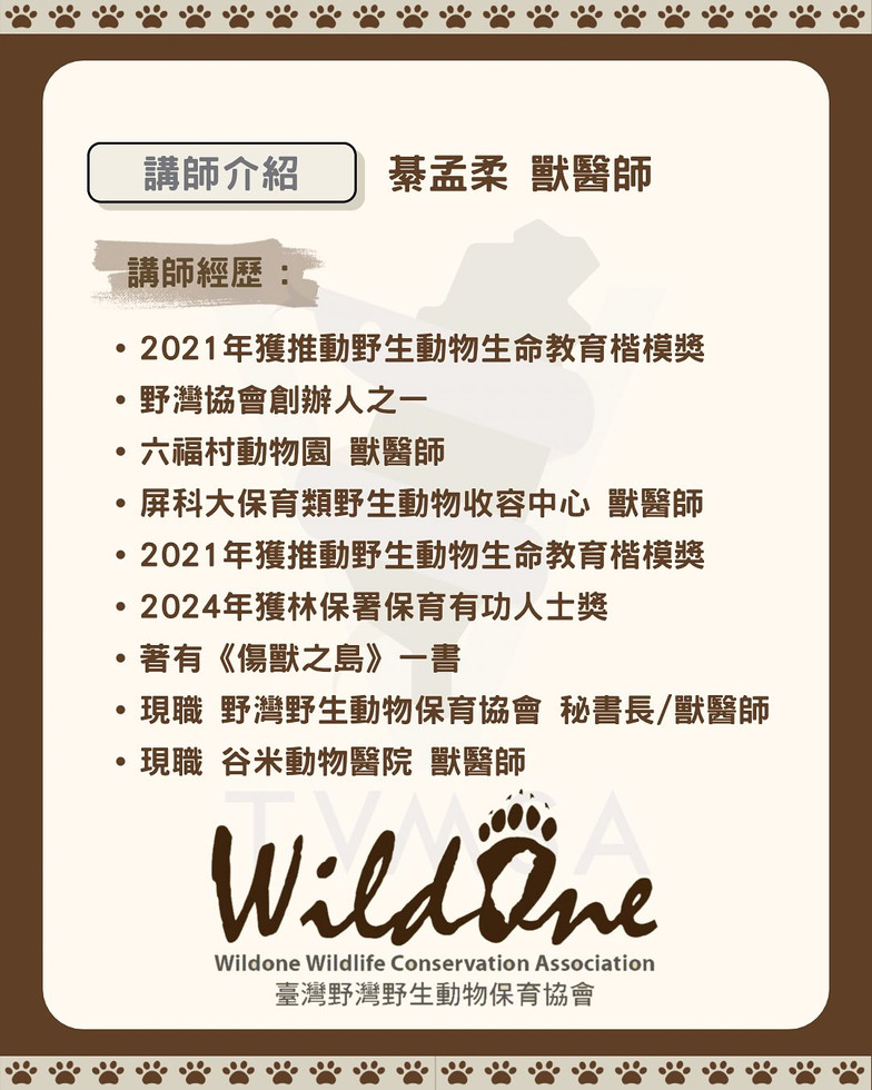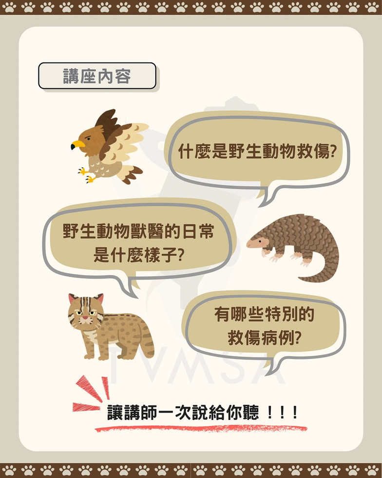 【TVMSA嘉大實體講座】 傷獸的守護者 : 野生動物救傷第一現場